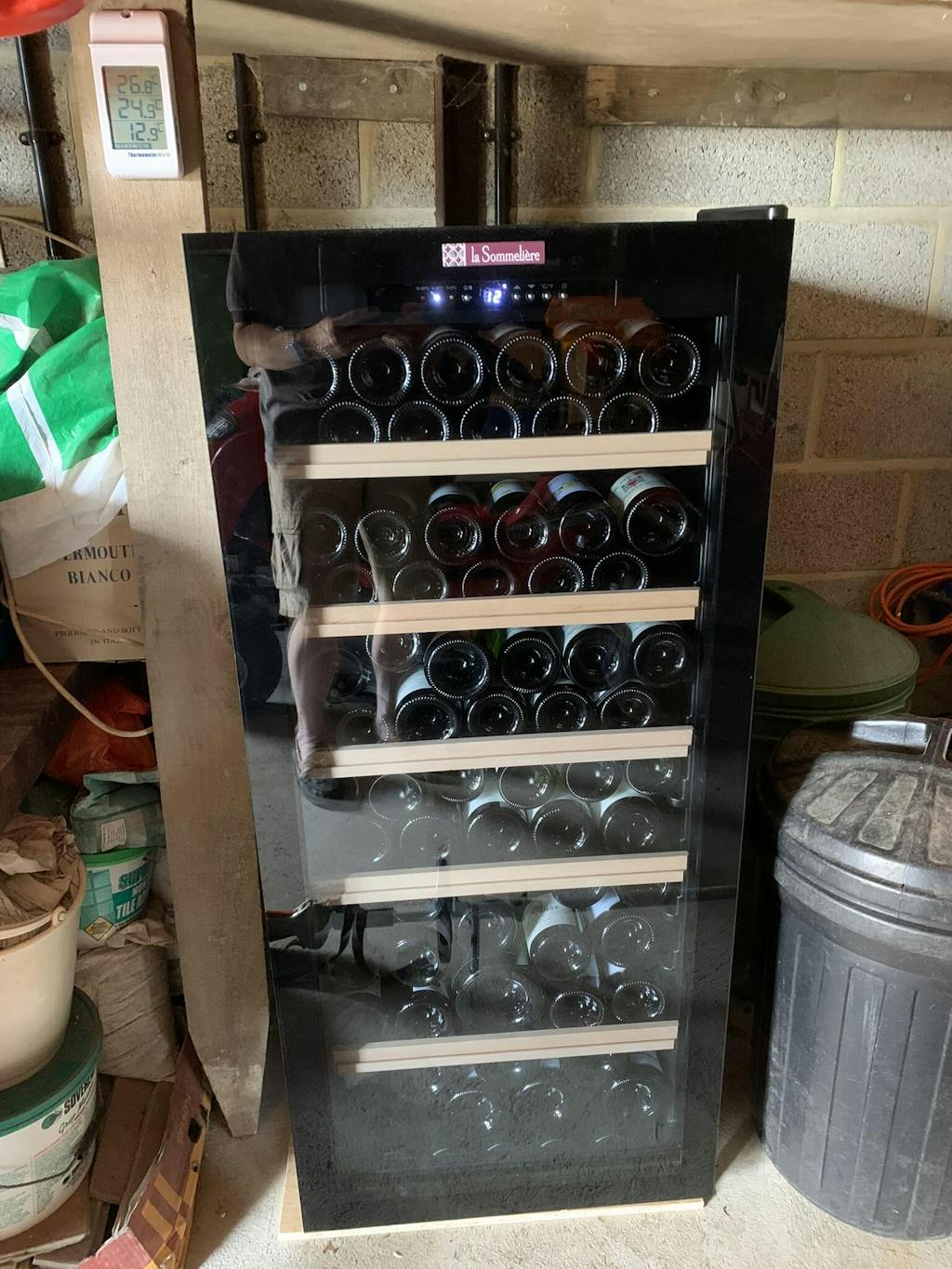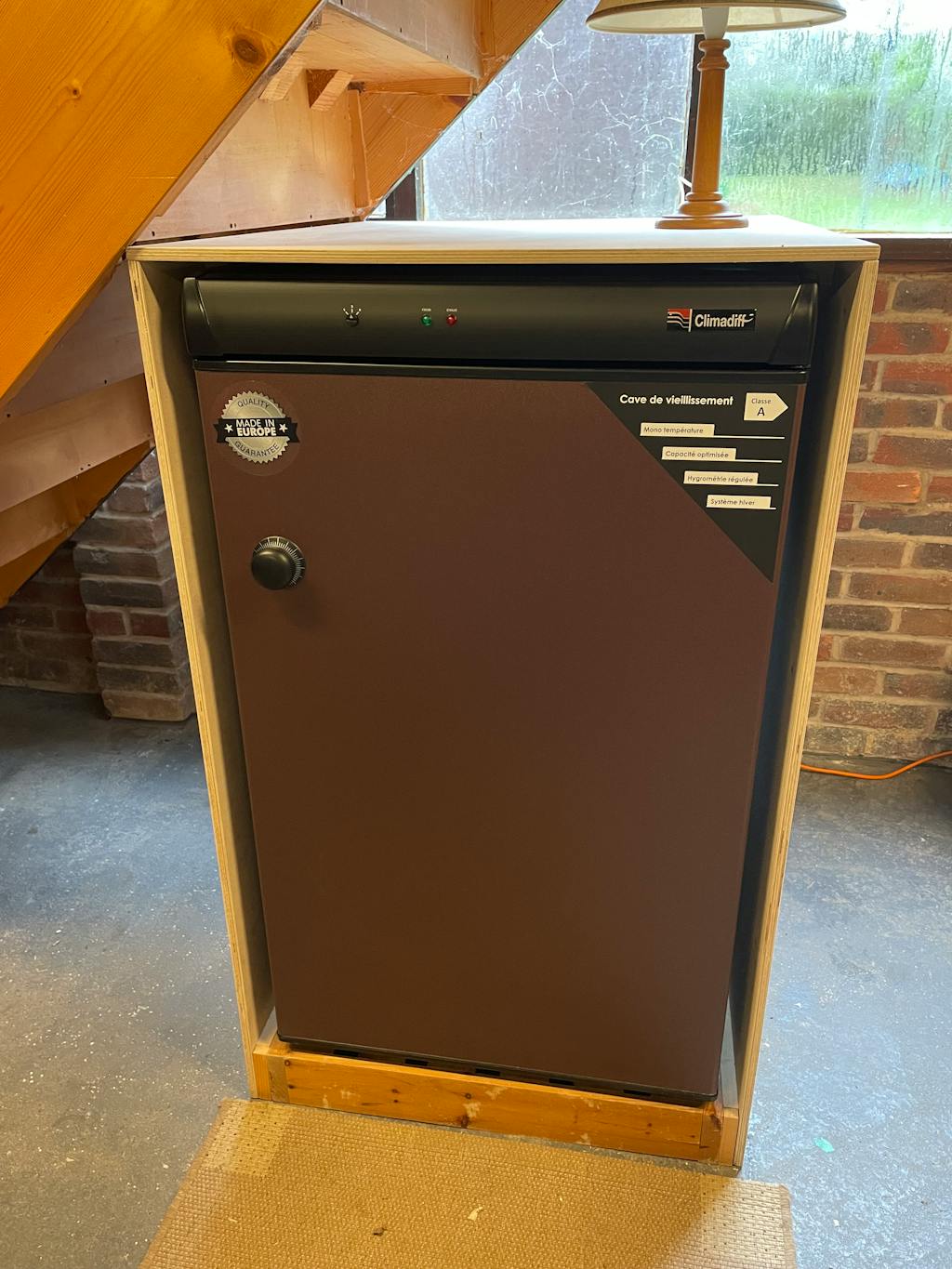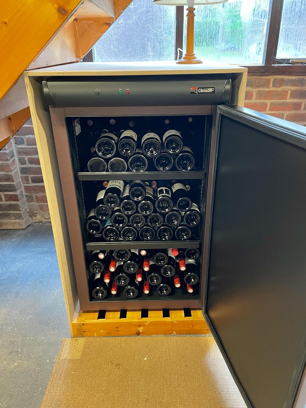 Excellent service from Expert Wine Storage, and the delivery service was a top notch two person effort, putting it in the garage exactly where I wanted it, and taking away the packaging. It could be stand alone in either house or garage, but I’ve protected mine in the garage installation with a simple plywood surround (leaving the back open of course). I highly recommend Climadiff. Look no further, and don’t, like me, hang around before taking the plunge and getting yourself kitted out!