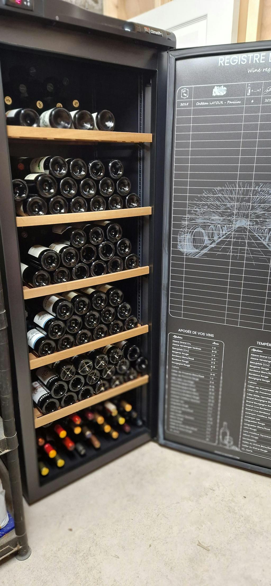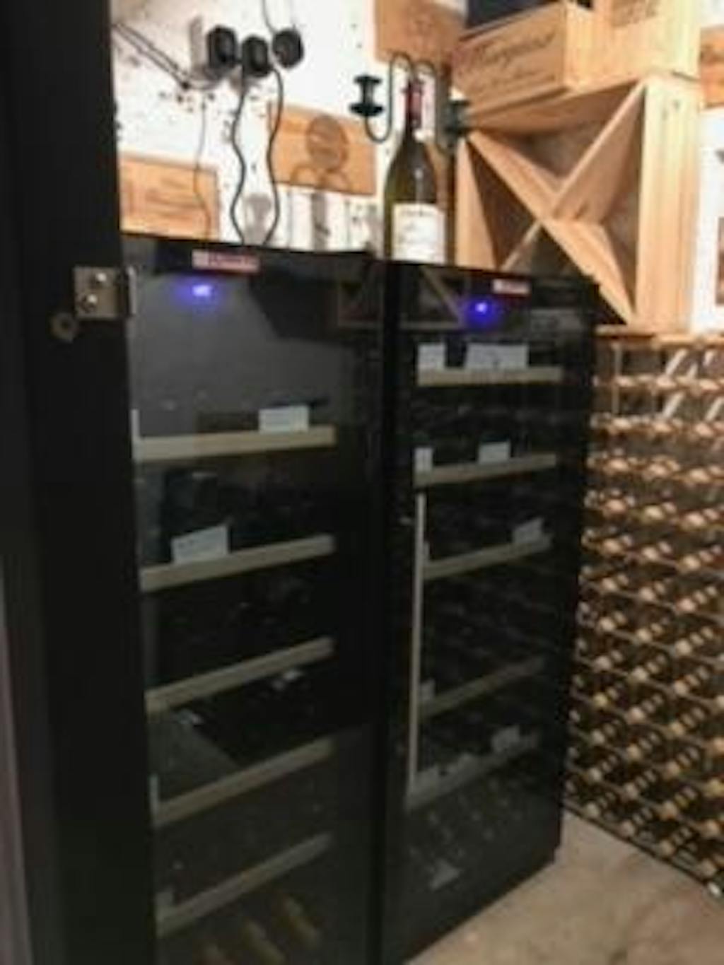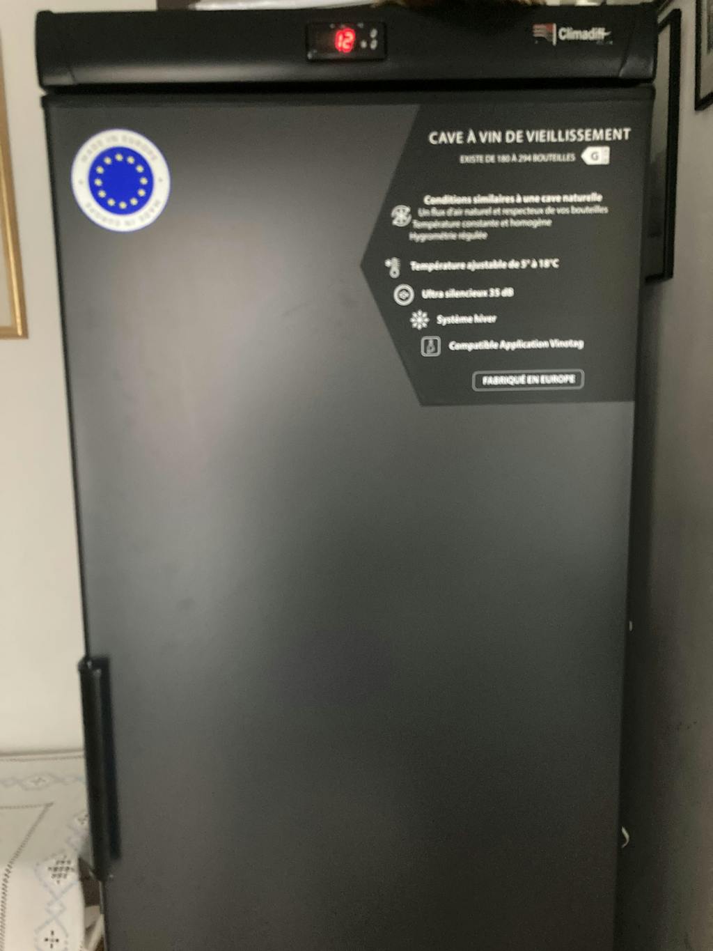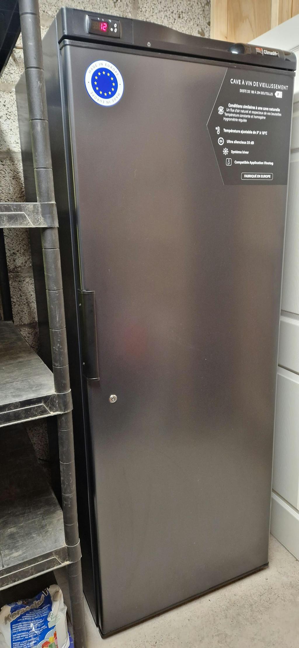 Excellent service from Expert Wine Storage, and the delivery service was a top notch two person effort, putting it in the garage exactly where I wanted it, and taking away the packaging. It could be stand alone in either house or garage, but I’ve protected mine in the garage installation with a simple plywood surround (leaving the back open of course). I highly recommend Climadiff. Look no further, and don’t, like me, hang around before taking the plunge and getting yourself kitted out!