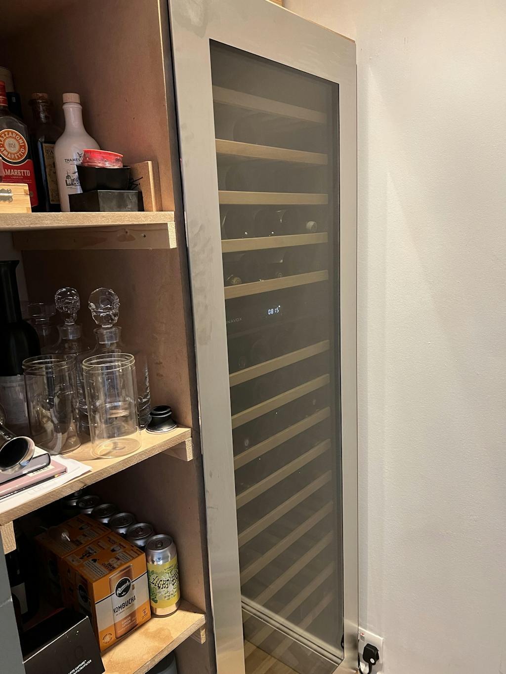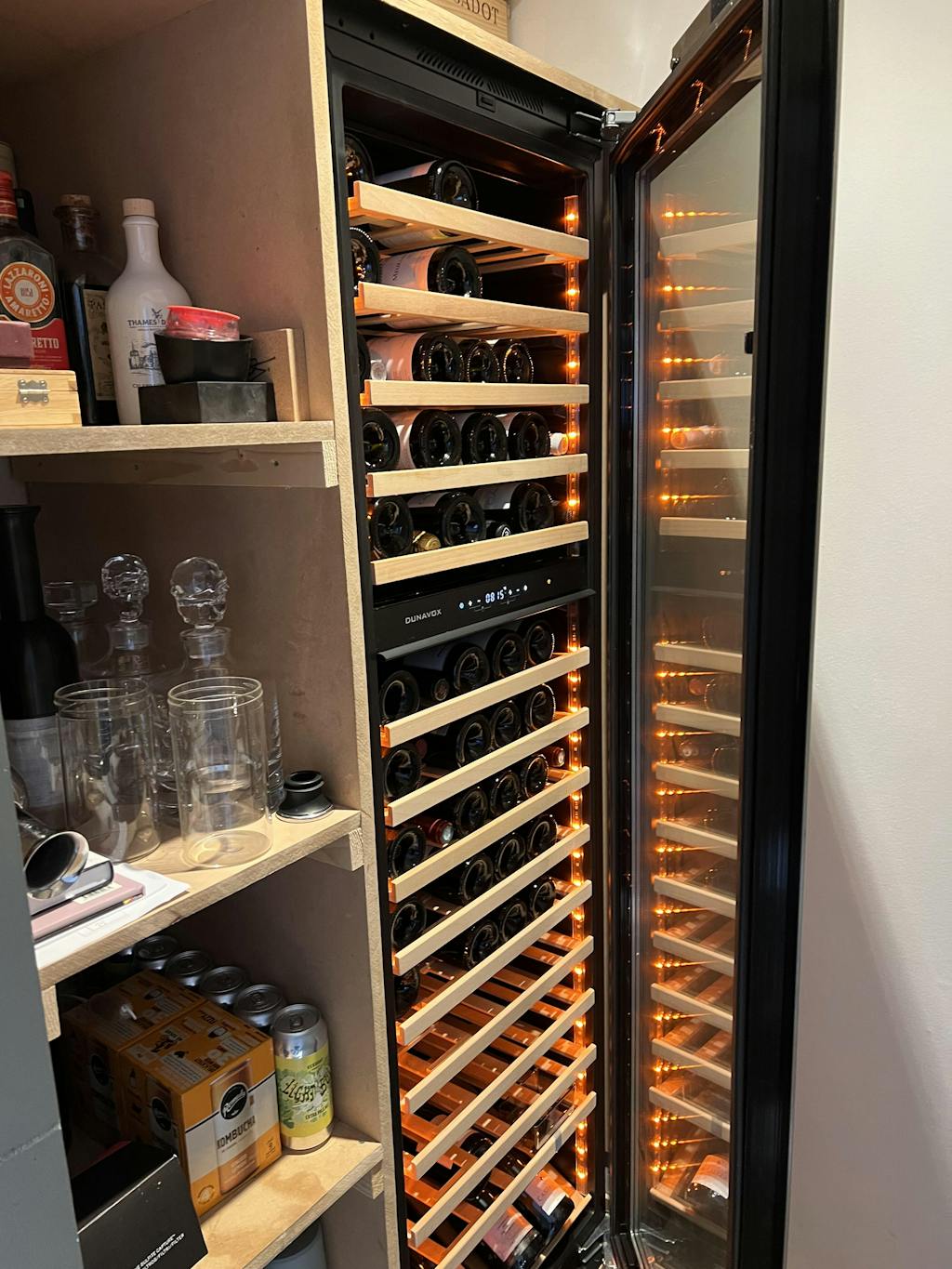 Really happy with purchase. Customer service was excellent. Very helpful and fast delivery. Didn't fit understairs where i had planned as door needs to open 180 degrees to pull shelves out. But found a spot in the kitchen and it looks great. Has been well admired already. Got mostly fizz at bottom so fewer bottles but still fine for us.